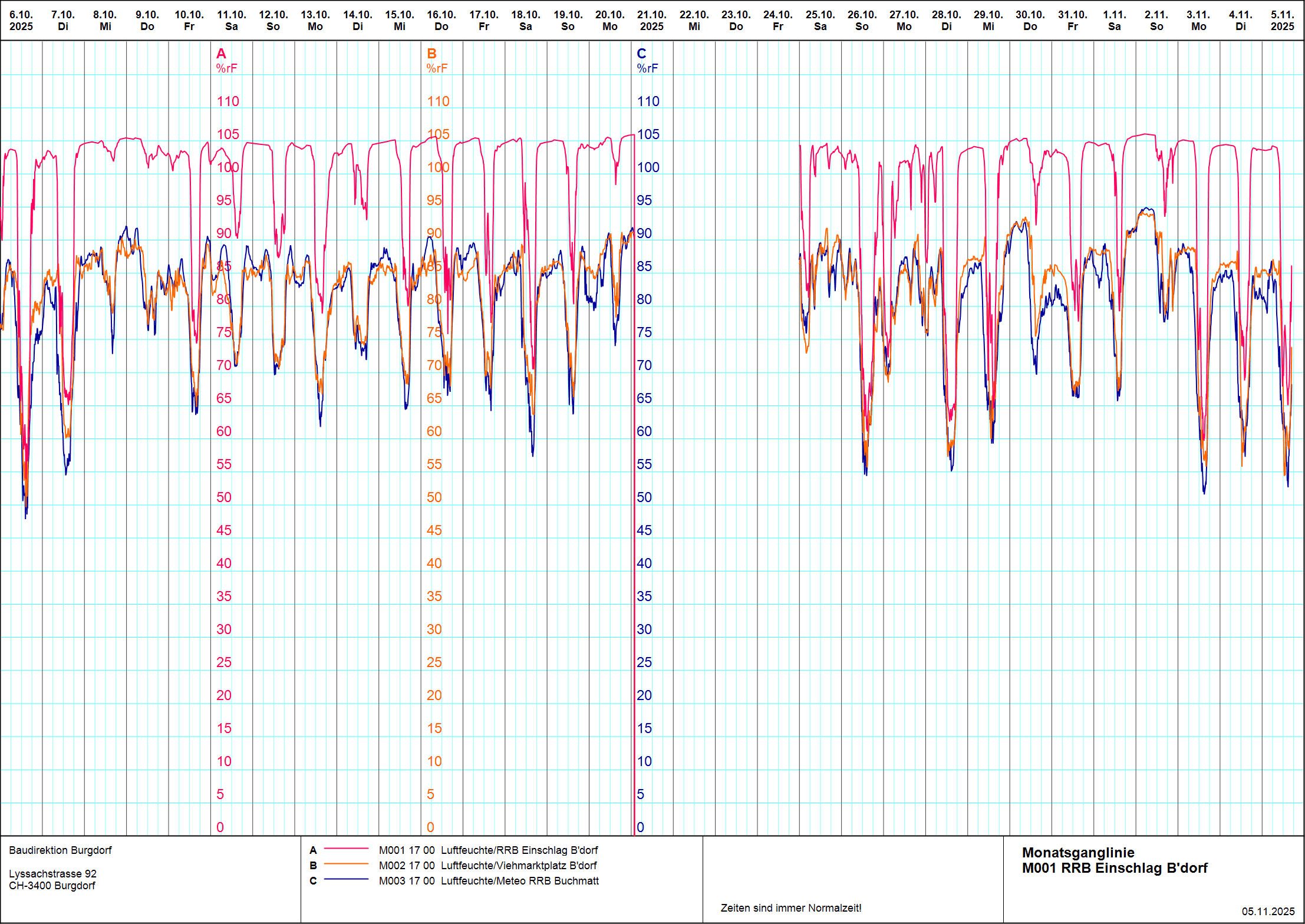 - M001 Einschlag Momentanwerte - M002 Viehmarktplatz Momentanwerte - M003 Buchmatt Momentanwerte